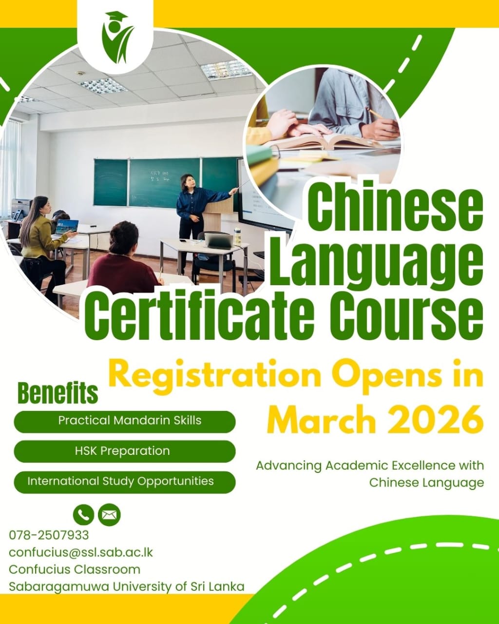 The Confucius Classroom of Sabaragamuwa University of Sri Lanka is pleased to announce the opening of registration for the Chinese Language Certificate Course in March 2026.
