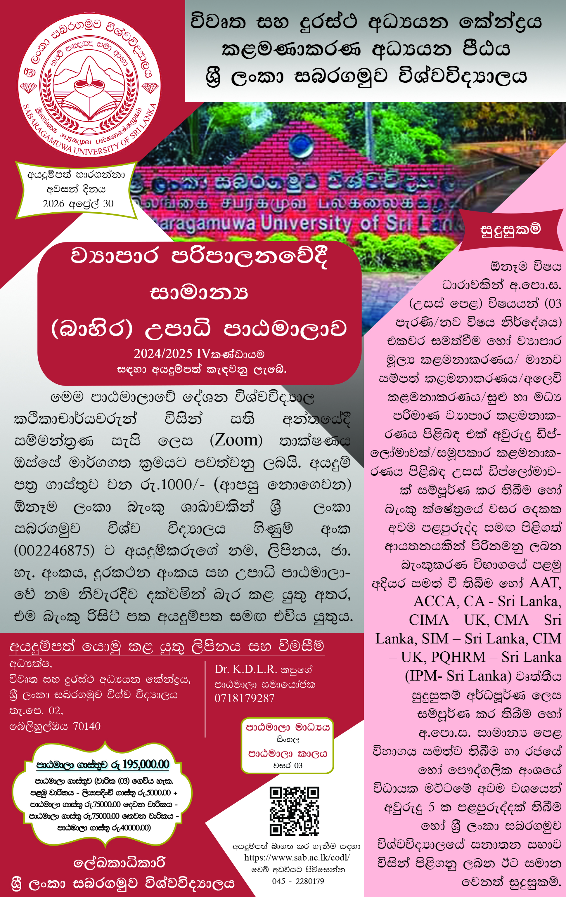 Calling Applications - BBA Degree Programme 2026