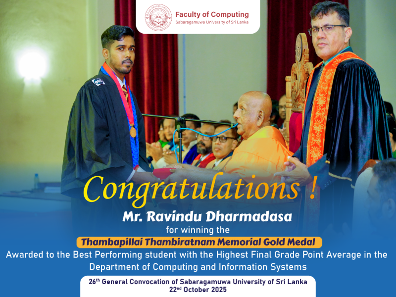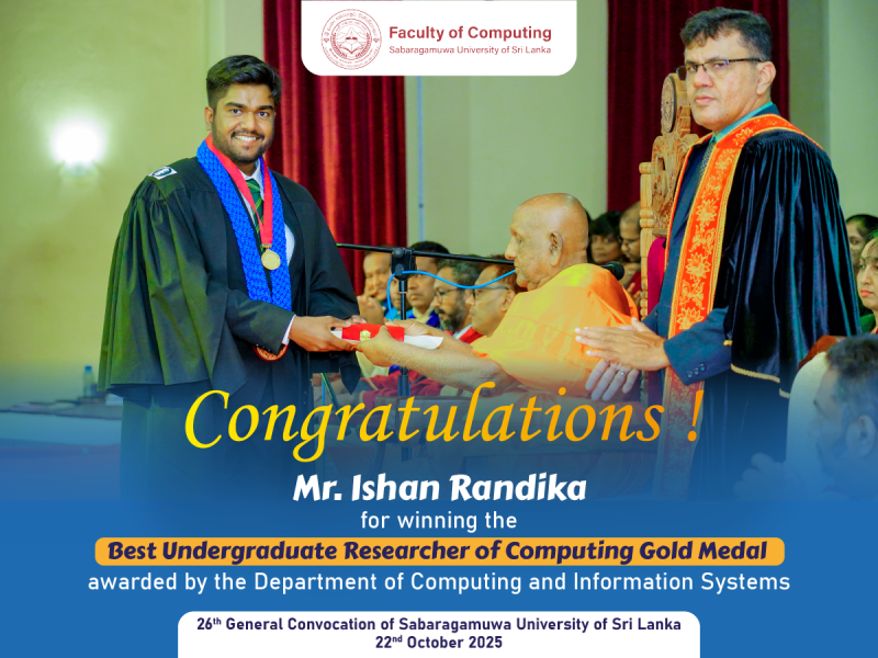 The Faculty of Computing (FoC) was established as the 9th Faculty of the Sabaragamuwa University of Sri Lanka (SUSL) by an Order made under Section 27(1) in the Gazette Extraordinary 2312/14 dated 27th December 2022.