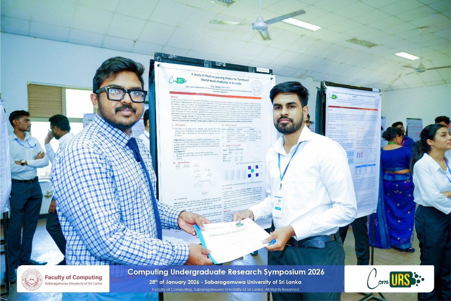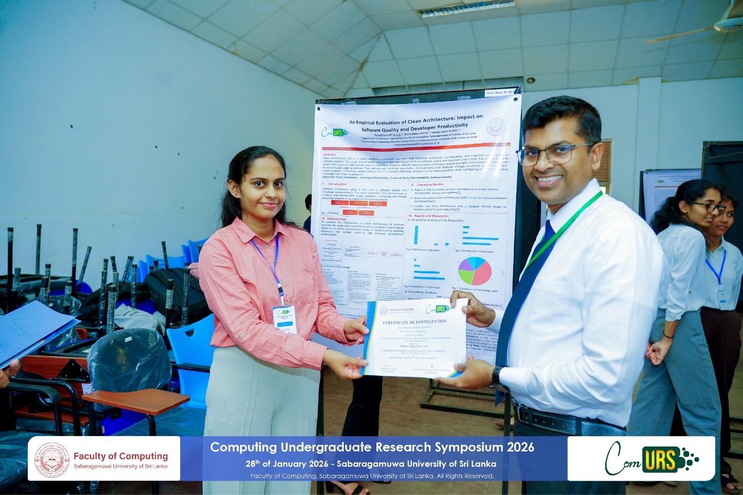 The Computing Undergraduate Research Symposium 2026 (ComURS2026) was successfully held on 28th January 2026 at the Faculty of Computing, Sabaragamuwa University of Sri Lanka. Under the theme "Next-Gen Solutions for a Digitally Connected World," the symposium showcased innovative undergraduate research across Information Systems, Software Engineering, Data Science, and Open tracks.