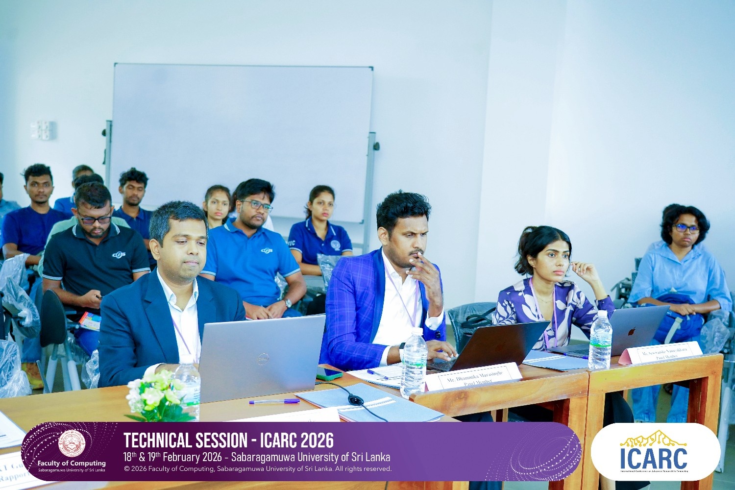 The ICARC 2026 Technical Sessions, held on 18th and 19th February 2026, featured the presentation of significant research findings by both local and international authors, creating a vibrant platform for scholarly exchange and academic discussion. The sessions covered eight trending tracks in the field of computing, including AI and Machine Learning, Software Engineering and Knowledge Engineering, Computer Networks and Internet of Things, Text Analytics and Natural Language Processing, Digital Transformation and Industry 5.0, Digital Transformation in Healthcare, Generative AI in Education, and an Open Track.