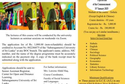 "The only Arts Faculty in Sri Lankan university system that got “A” grades for all its degree programmes in the "Self Evaluation Report" by the University Grants Commission"