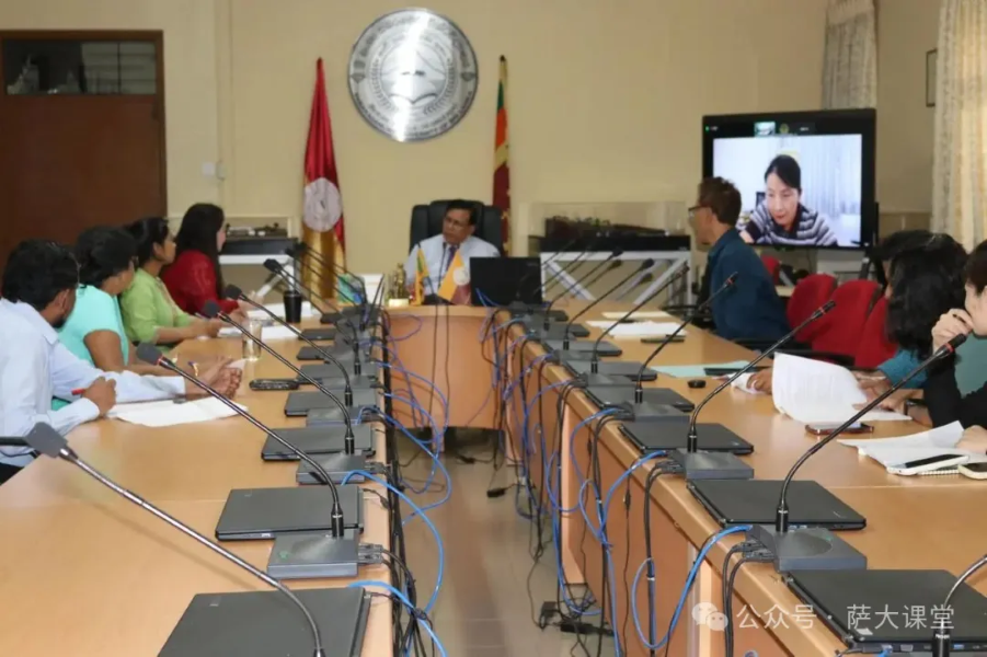 2025年5月29日上午九点(当地时间),萨伯勒格穆沃大学孔子课堂召开了2025年度理事会会议。本次会议采用线上线下结合的形式,由萨伯勒格穆沃大学执行校长M Sunil Shantha教授主持。黄冈师范学院国际交流合作处胡晓晏副处长作为黄冈师范学院代表线上参会, 孔子课堂中方负责人朱颂副教授、萨伯勒格穆沃大学社会科学与语言学院院长兼孔子课堂外方负责人Rohan Abeywickrama博士、首任孔子课堂外方负责人Manoj Ariyaratna教授、语言系主任Champa De Silva博士、中方汉语教师、本土汉语教师等相关理事会成员线下参会。