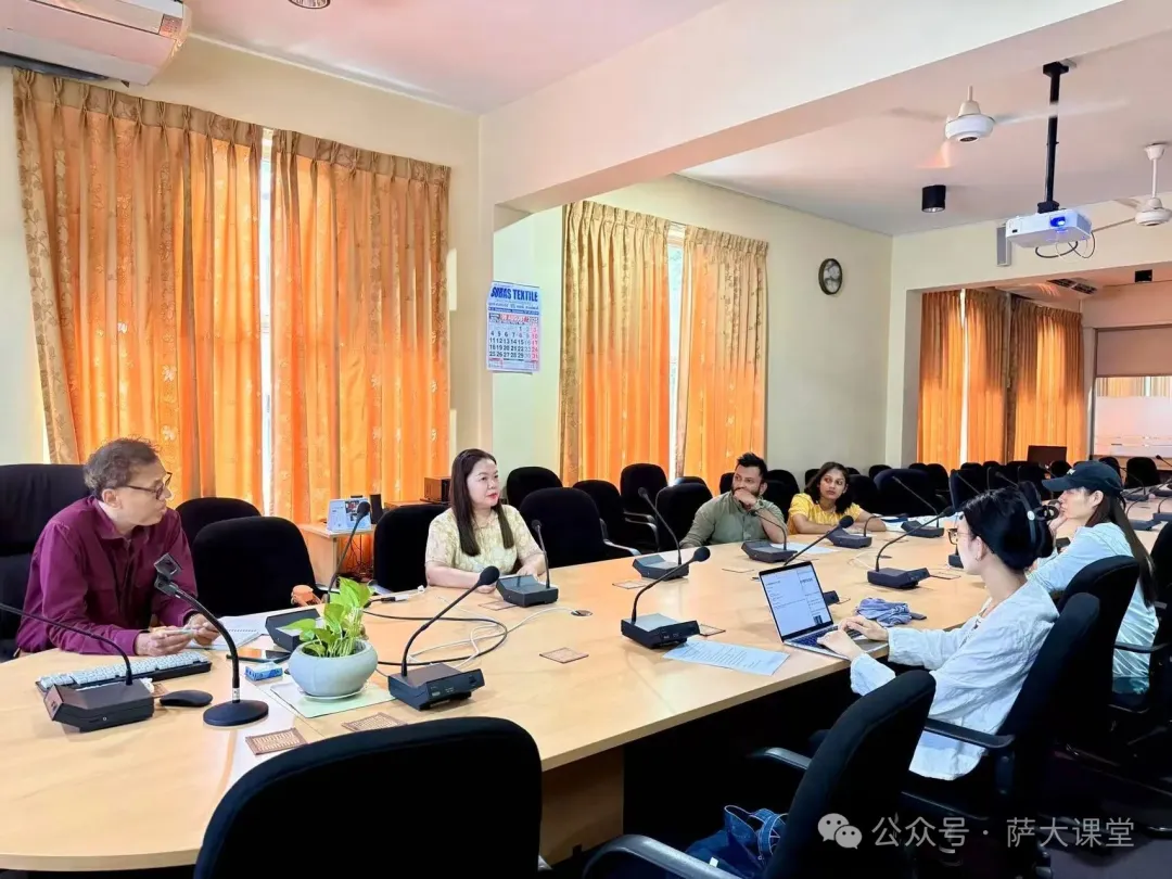 8月20日,萨伯勒格穆沃大学孔子课堂2025年秋季学期期中工作会议在萨大社会与语言学院会议厅顺利召开。本次会议旨在总结上半年工作成果,部署下半年重点任务,推动孔子课堂各项工作高质量发展。会议由孔子课堂中方负责人朱颂副教授主持。萨大社会与语言学院院长兼孔子课堂外方负责人Rohan Abeywickrama博士、孔课公派教师张欢、夏子涵,以及本土中文教师诺尔博士、兰月老师等核心成员出席会议。