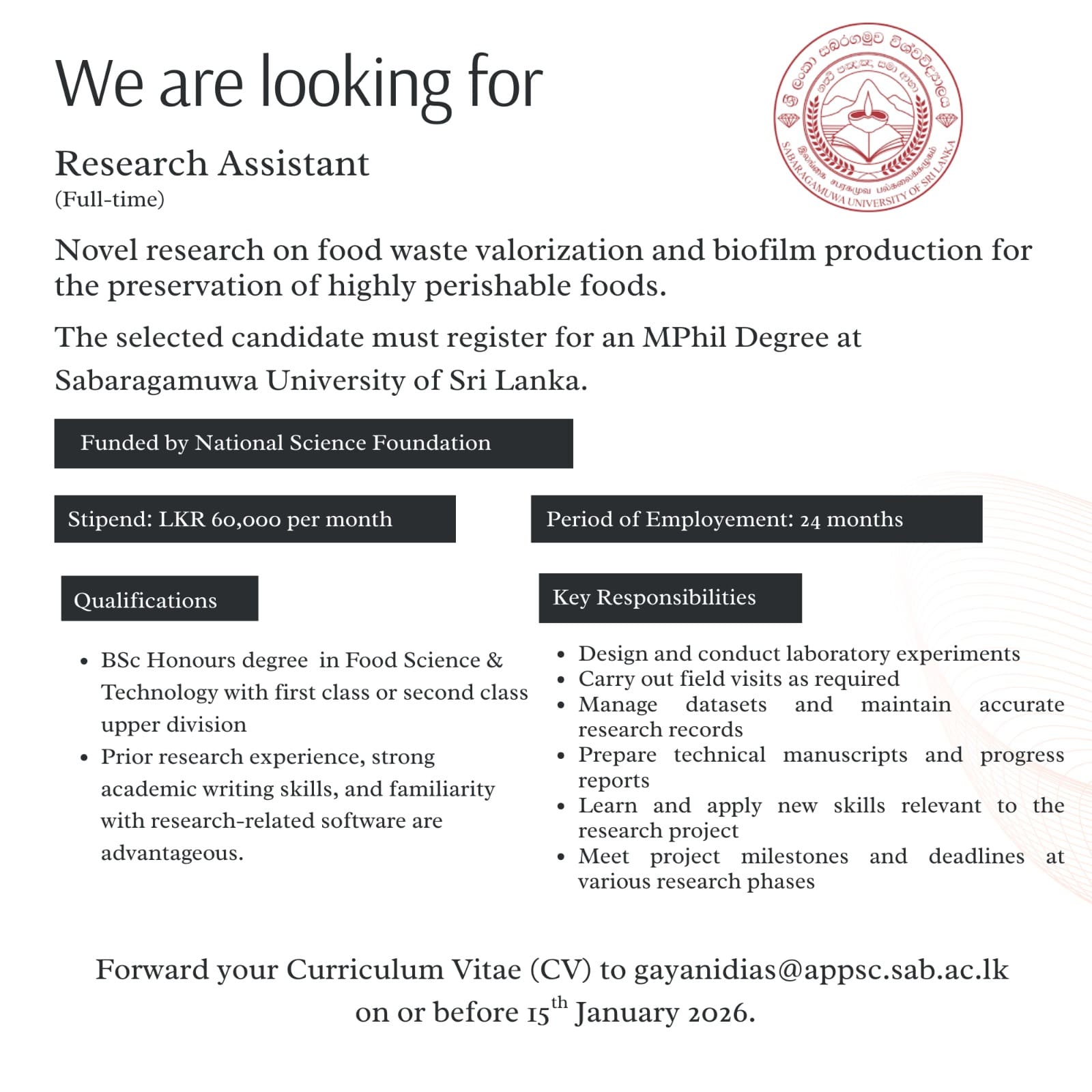 Post of Research Assiatant