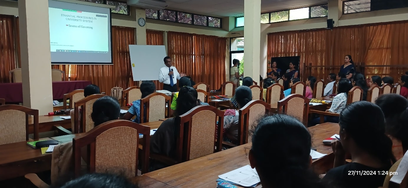 CQA with the recommendation of the Senate Standing Committee on Quality organized a workshop on “Financial Procedures” for Management Assistants of SUSL. It was held successfully on 27th November2024, at the Staff Development Centre, SUSL with the participation of 96 participants.