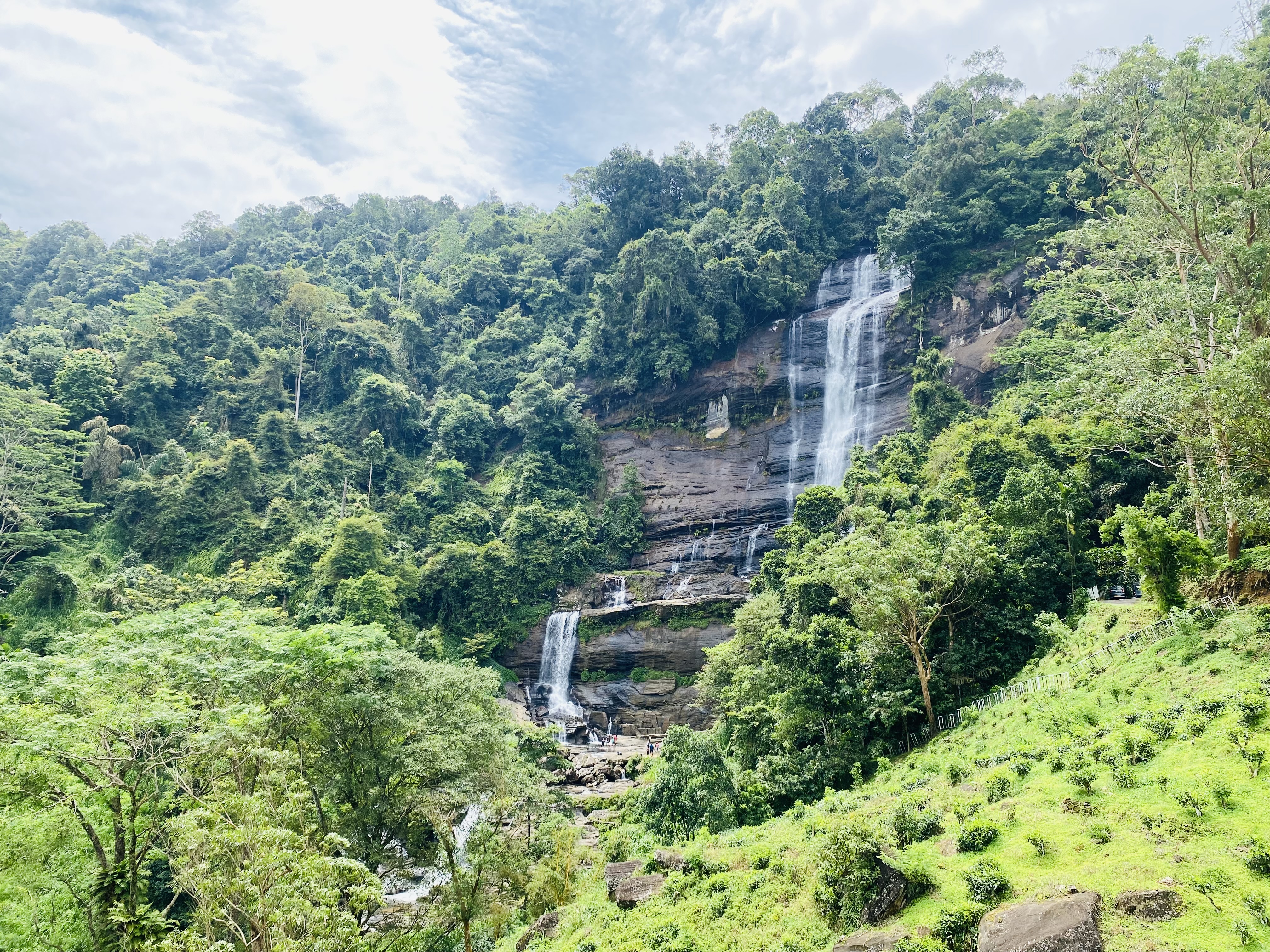 - A well-constructed concrete staircase descends from the roadside to the waterfall basin.