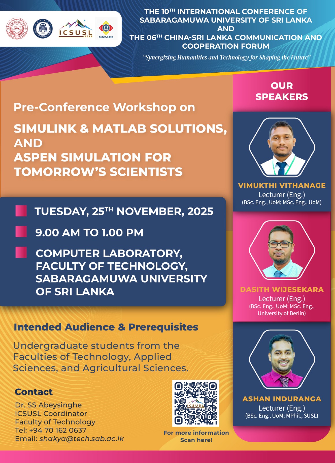 2025-11-25 9.00 a.m - 1.00 p.m Pre Conference Workshop on Simulink & MATLAB Solutions & Aspen simulation for Tomorrow’s Scientists